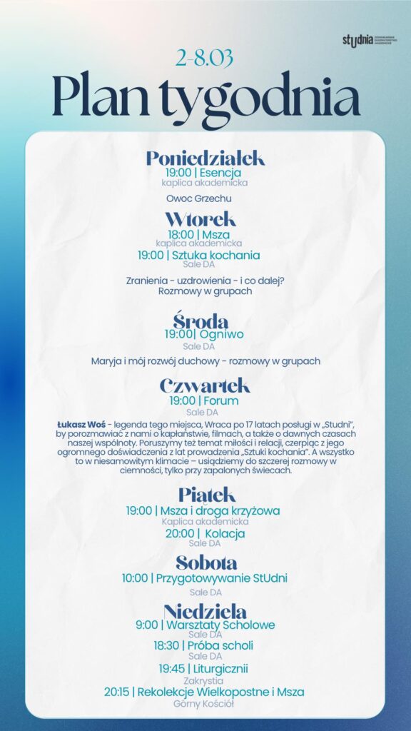 Plan tygodnia 02.03 – 08.03.2026